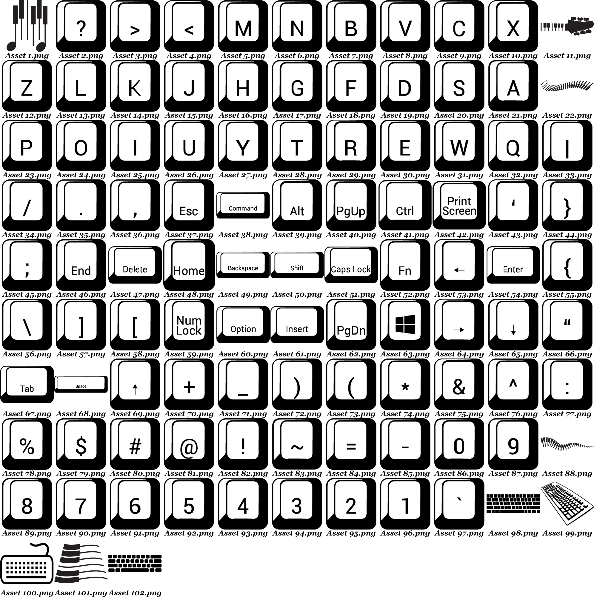 - Designs: 100+ keyboard key illustrations, including shortcut keys and tech-inspired icons