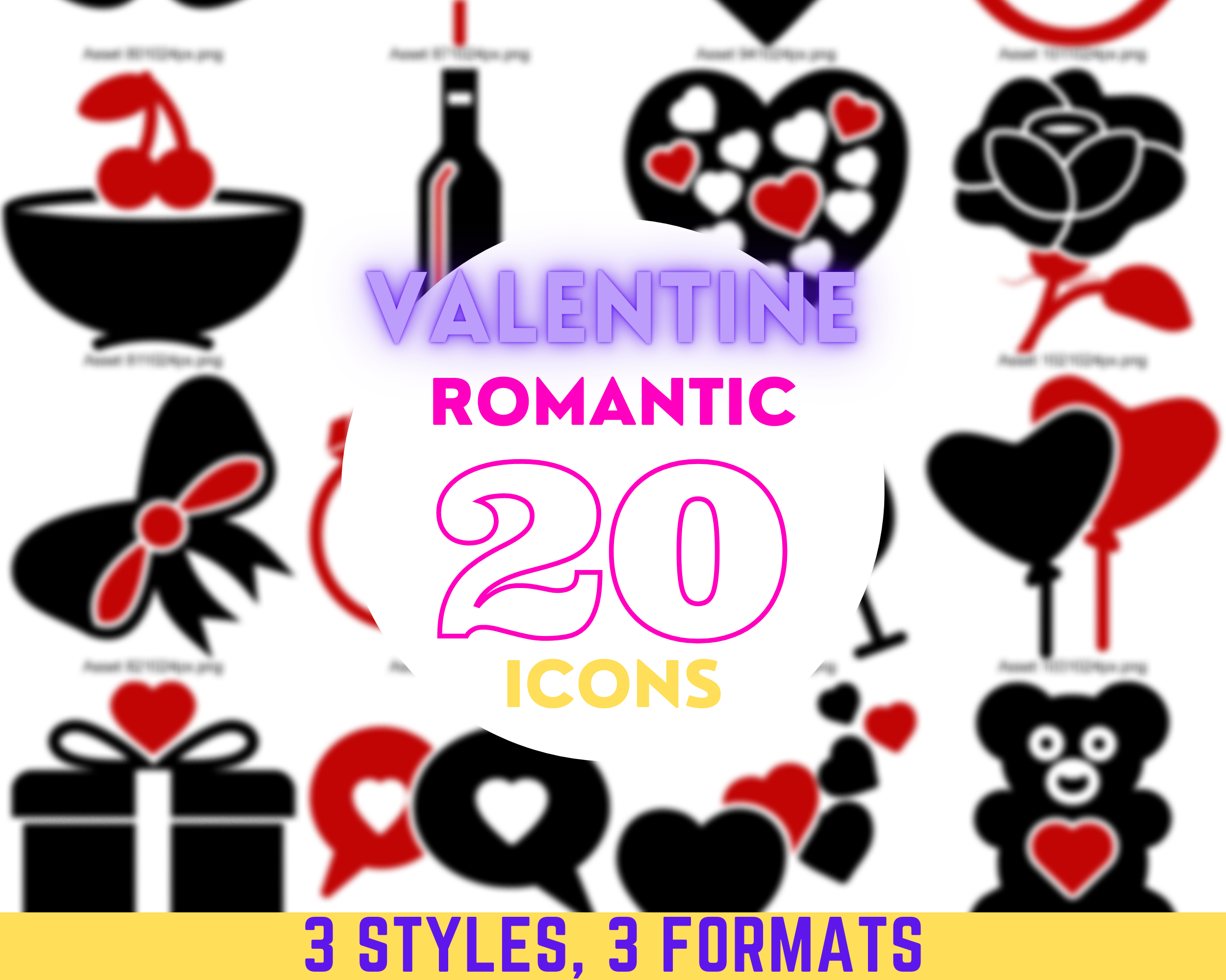 20 Valentine-Themed Icons Bundle | Romantic Designs for Digital & Print Projects