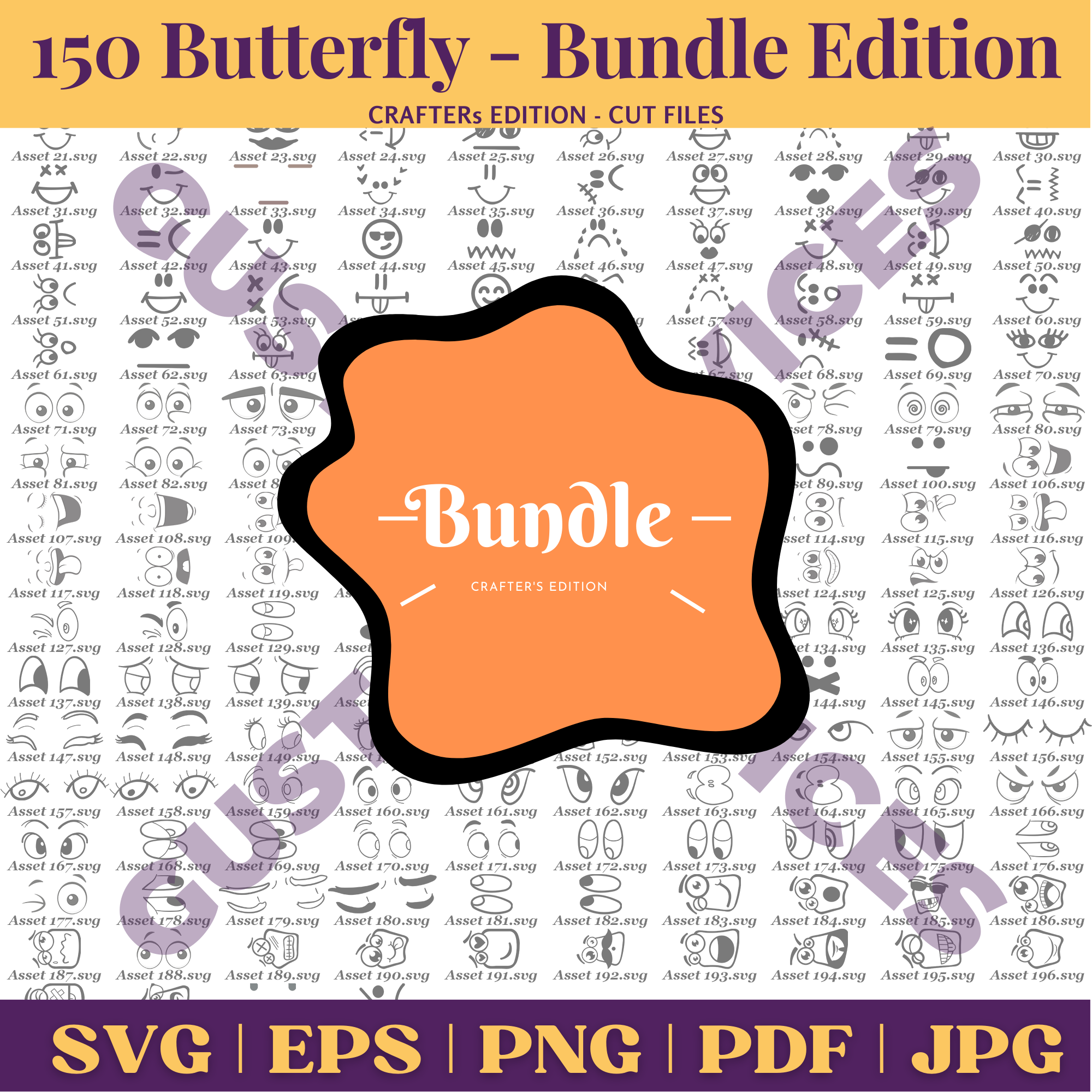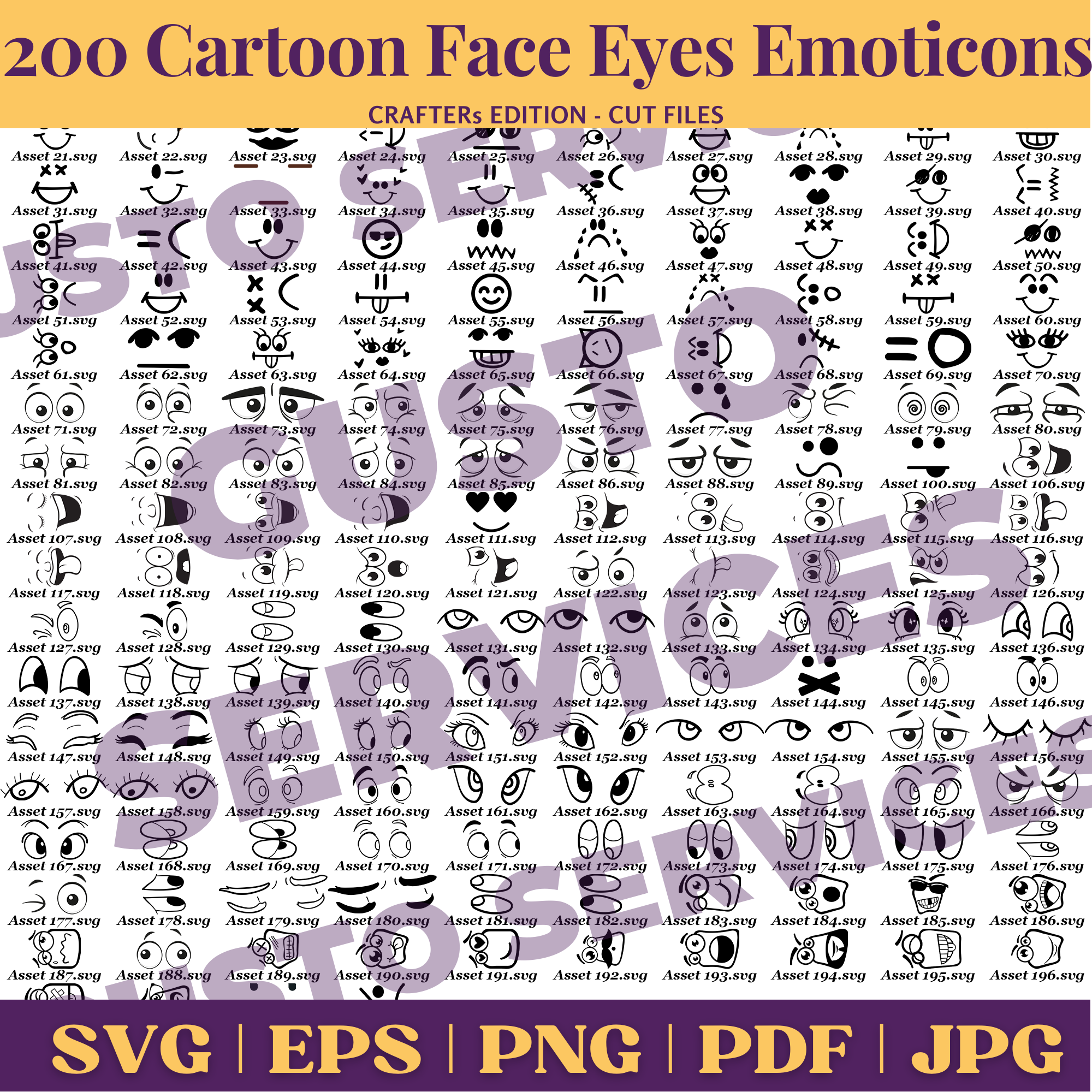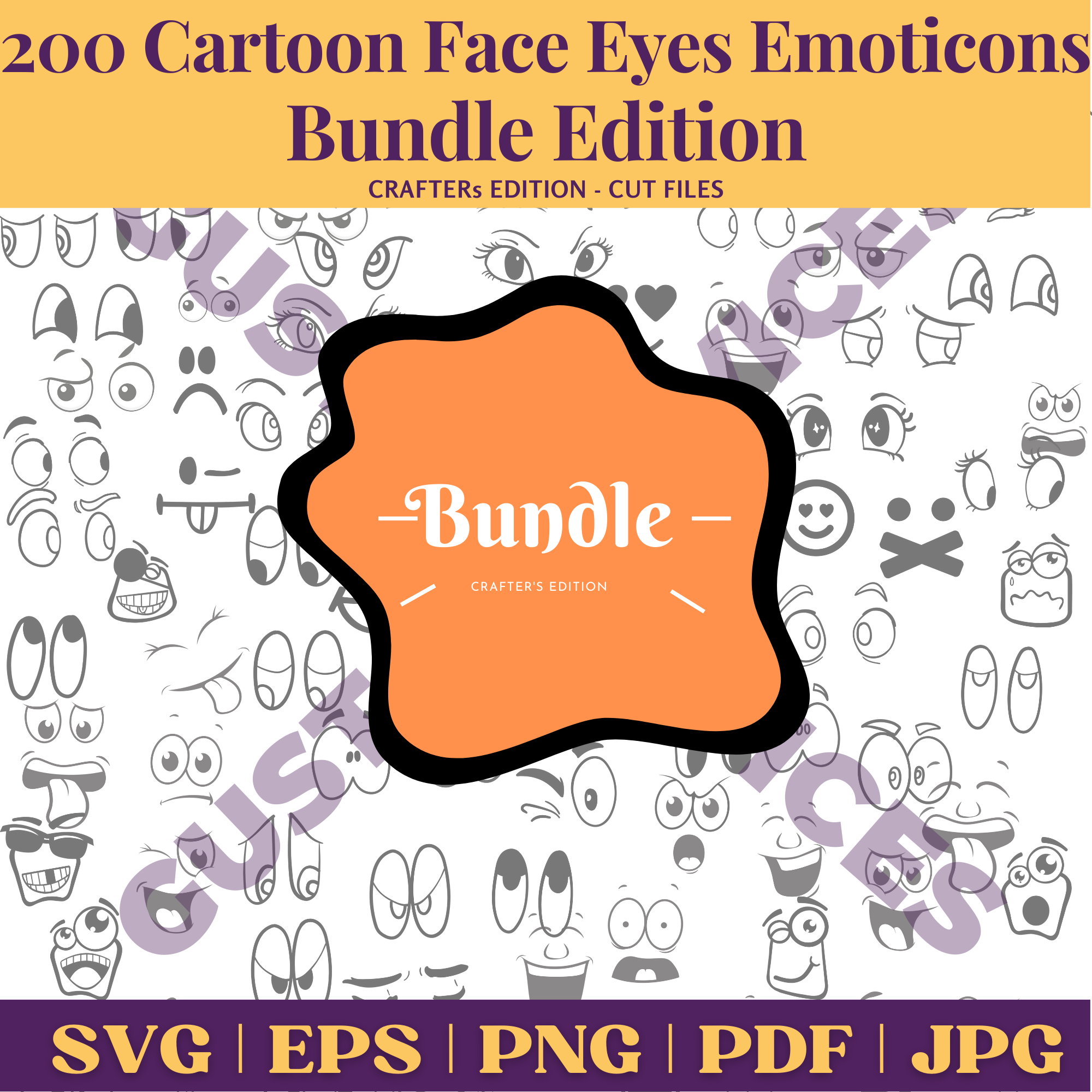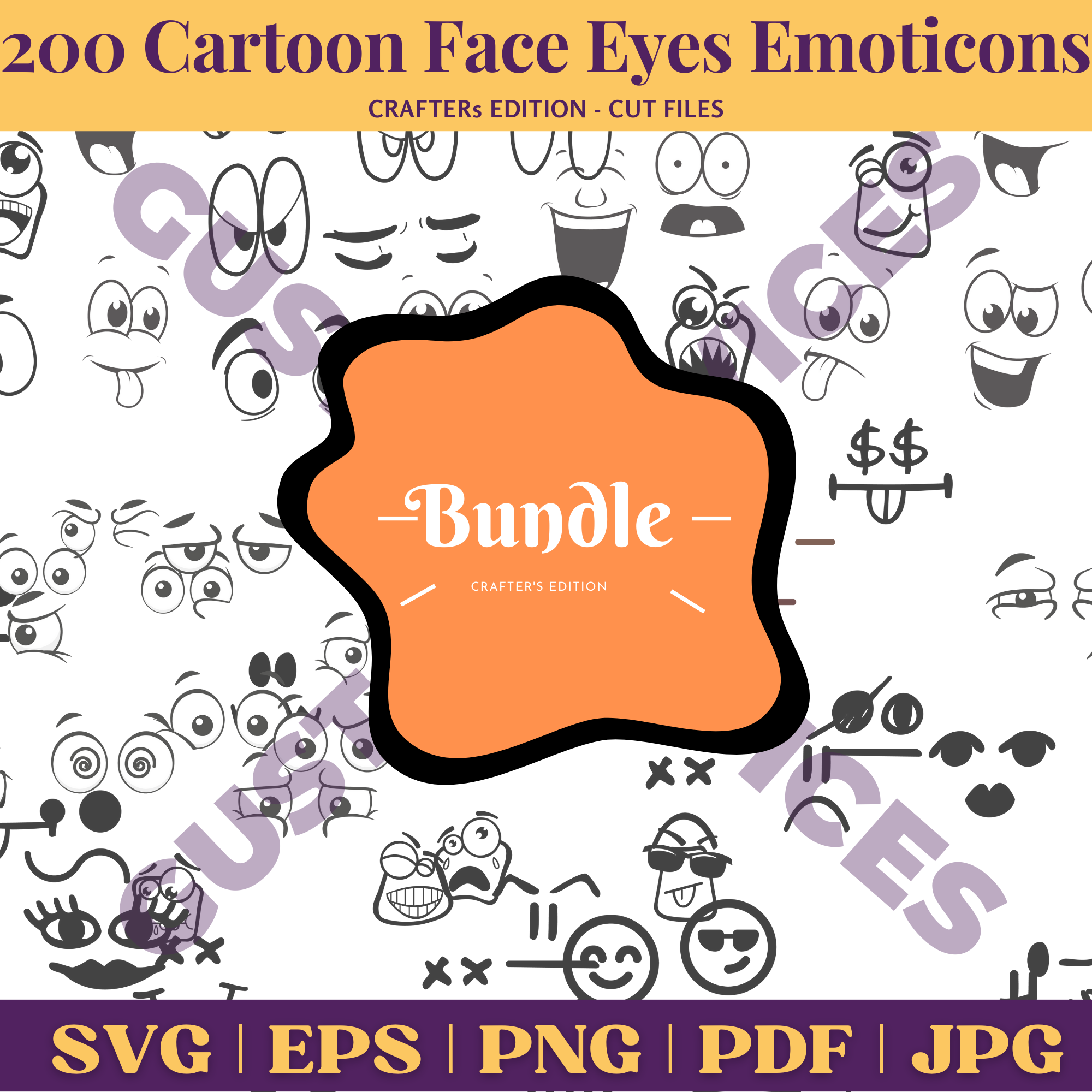 200 Cartoon Eyes & Emoticon Bundle | SVG, PNG, EPS, PDF Digital Download