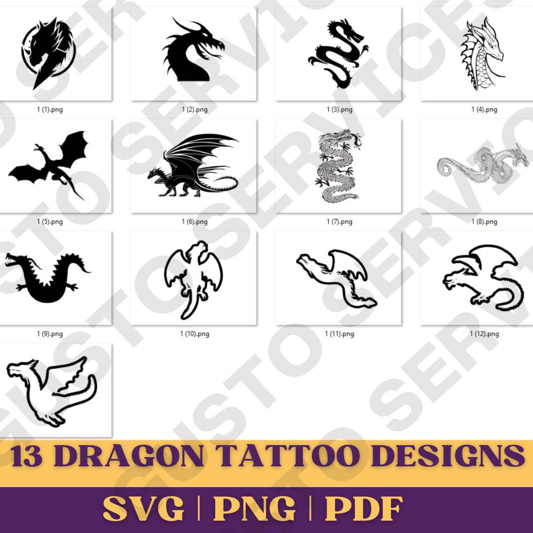Dragon Tattoo Design SVG Bundle | Digital Download for Men & Women | PDF, PNG, SVG Formats
