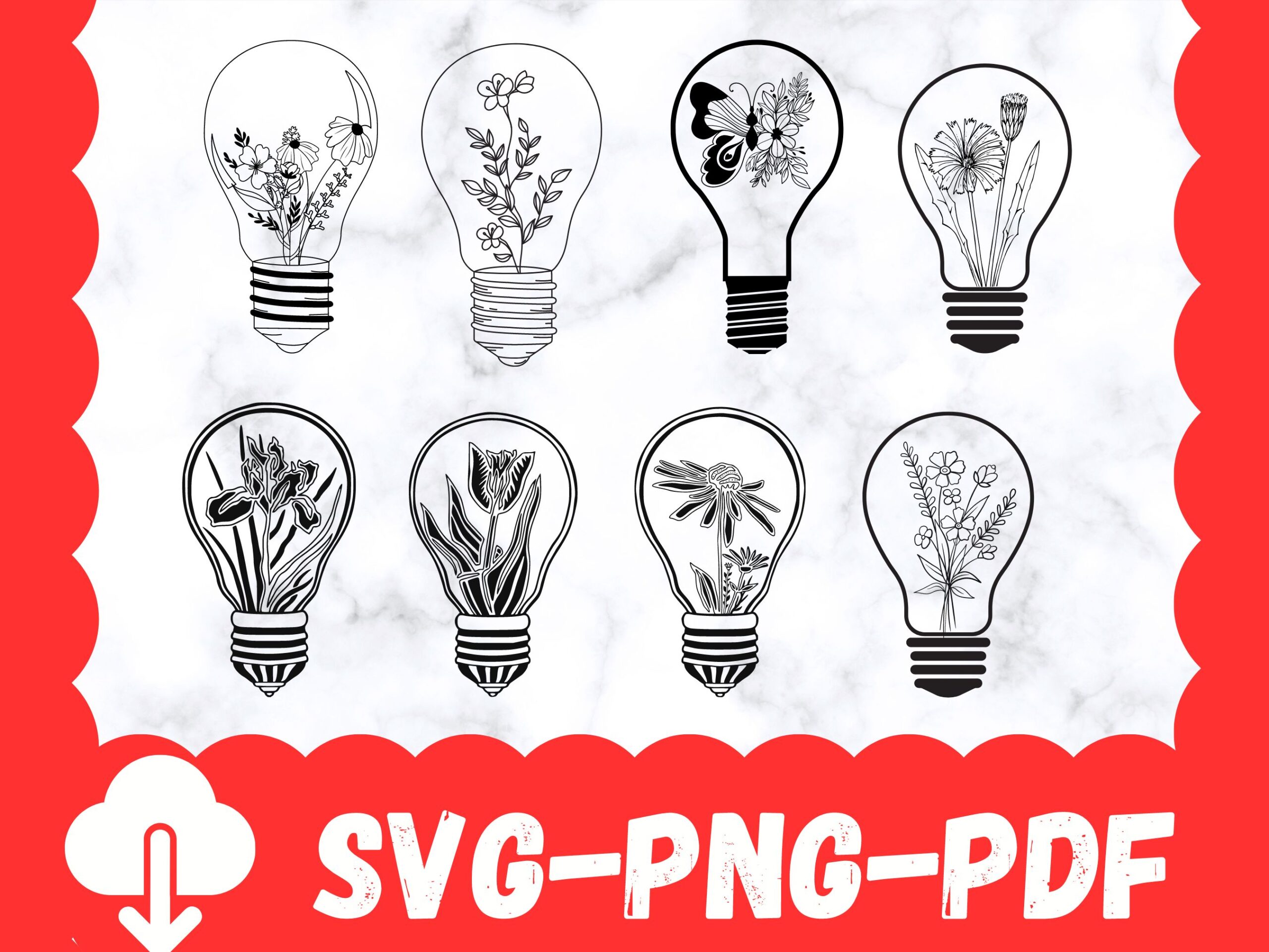 Ideal for DIY enthusiasts, gift makers, and nature lovers, this bundle adds an artistic touch to any project with its mix of lightbulb and floral elements.