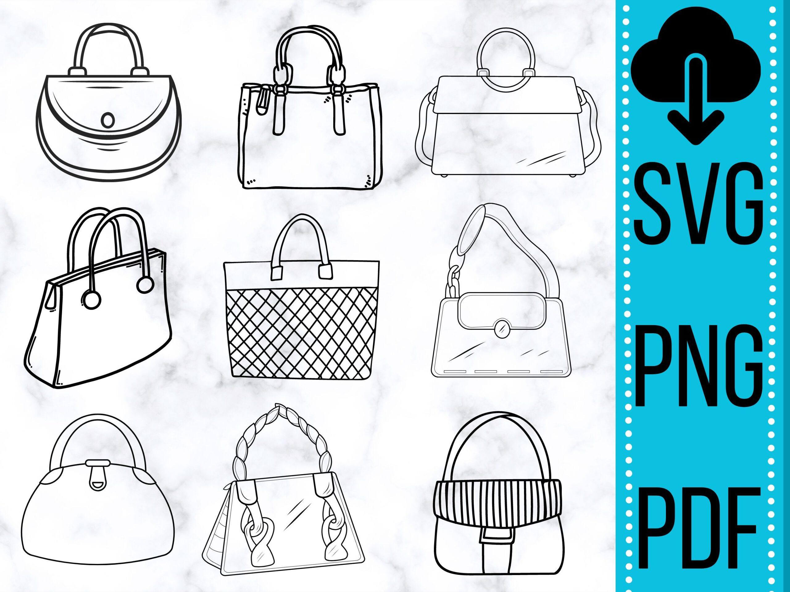 - ✅ Fashion-Forward Handbag Designs – Perfect for logos, decor, and crafting projects.